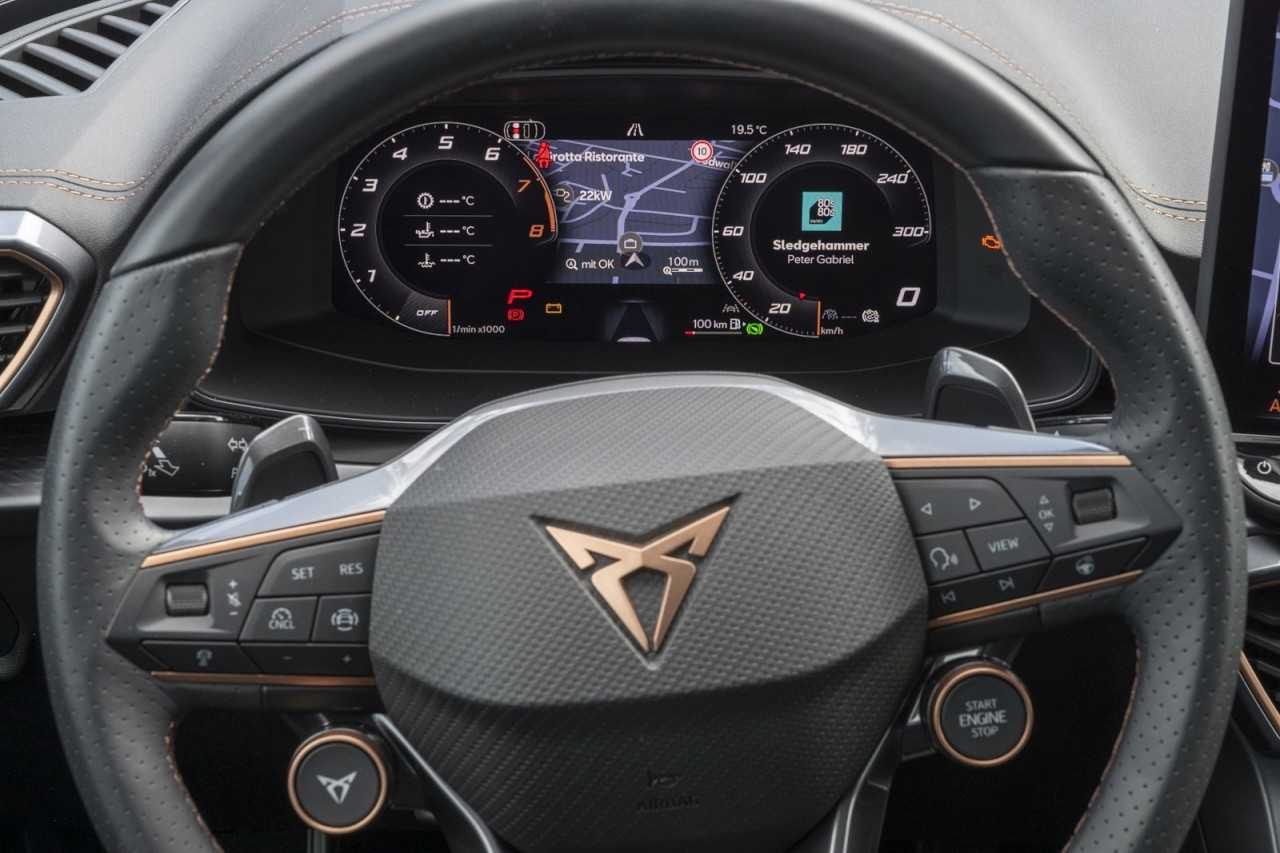 7-Gang-Automatikgetriebe A7, Climatronic ( 3-Zonen ) mit Klimabedienteil hinten, Matrix-LED-Scheinwerfer mit LED-Signatur, Tagesfahrlicht mit Assistenzfahrlicht u.Coming- u. Leaving-home Funktion automatisch, CUPRA Connect Plus - 3 Jahre (Serienumfang mit Navigationssystem), Audio-Navigationssystem mit Touchscreen Farbbildschirm 12.9, Sitzheizung für Vordersitze getrennt regelbar, Sitzeinstellung links elektrisch mit Memory rechts mechan. höheneinstellbar, Scheibenwischer-Intervallschaltung mit Licht/Regensensor, Ambiente-Beleuchtung LED, FPK-Medium, Diebstahlalarmanlage Innenraumüber- wachung Back-up-Horn und Abschleppschutz, Fahrerairbag, Airbag Beifahrerseite abschaltbar, Seitenairbag, Kopf-Airbag-System, Mit Rückfahrkamerasystem (Ausf.2), Digitaler Radioempfang, Premium-Soundsystempaket Immersive by Sennheiser für Interieur 2-3 (Interieur Dinamica®/Interieur Leder), Extern USB Typ-C Datenbuchse(n) und Ladebuchse(n), Sprachsteuerung, Full Link (MirrorLink Apple CarPlay und Android Auto), Fahrassistenz-System: Autom. Distanzregelung (ACC / PCC) mit vorausschauender Geschw.-Regelung, Notrufsystem, Fahrassistenz-System: Umfeldbeobachtungssystem (Front assist) mit City-Notbremsfunktion, Fahrassistenz-System: Fernlichtassistent, Fahrassistenz-System: Spurhalteassistent, Auspark- und Spurwechselassistent und Ausstiegswarner, Zentralverriegelung / Startanlage Keyless Go (Start-Stop-Knopf), Schlüsselloses Schließ- und Startsystem Keyless Advanced ohne Safesicherung, Fahrassistenz-System: Müdigkeitserkennung, Progressivlenkung, Einparkhilfe vorn und hinten, Elektronische Wegfahrsperre, Start/Stopp-Anlage mit Rekuperation, Dachreling schwarz, Kopfstützen hinten (3-fach), Otto-Partikelfilter (OPF), Außenspiegel elektr. verstell- heiz- und anklappbar mit Spiegelabsenkung und Welcome Light, Sicherheitsinnenspiegel automatisch abblendbar, Differenzialsperre ( XDS ) Dynamische Traktions Hilfe, Fensterheber mit Komfortschaltung und Abschaltsicherung elektrisch, Mit Verkehrszeichenerkennung, 19 Zoll -Leichtmetallräder Sandstorm Cop. bearb. 8J x 19 Schwarz/Copper Reifen 245/40 R19 94W Design 3 Sandstorm, Isofix-Aufnahmen für Kindersitz an Beifahrersitz und Rücksitz (inkl. i-Size-Kindersitze), Lenkrad heizbar (CUPRA Supersport Leder) mit Multifunktion und Schaltfunktion, Lendenwirbelstütze Sitz vorn rechts verstellbar, Mittelarmlehne vorn, Rücksitzlehne geteilt/klappbar mit Mittelarmlehne und Durchladeeinrichtung, Gepäckraumabdeckung / Rollo, Komfortöffnung Heckklappe (Virtuelles Pedal), Seitenscheiben ab 2.Sitzreihe und Heckscheibe dunkel getönt (Privacy Glass), Scheiben seitlich in Wärmeschutzver- glasung ab B-Säule und hinten dunkel eingefärbt, Rücksitzlehnen umklappbar mit Fernentriegelung im Kofferraum, Reifenkontroll-Anzeige, Licht- und Sicht-Paket, Winter-Paket, Platzsparendes Notrad Radial-Bauweise (5-Loch) 18-Reserverad als Notrad, Reifen-Reparaturset, Nichtraucherfahrzeug, Scheckheftgepflegt, Sonnenblende rechts mit Spiegel (beleuchtet), Pure Performance-Paket für Formentor-Motoren, Adaptive Fahrwerksregelung mit kontinuierlicher Bedienung, Subwoofer, 11 Lautsprecher, Intelligent Drive Lite Launch, Fahrassistenz-Paket XL, Fahrassistenz-System: Spurhalteassistent Plus inkl. Travel Assist Emergency Assist und Stauassistent, Fahrassistenz-System: Pre-Crash-System, Edge-Paket ohne SAFE-Verriegelung, Ambiente-Beleuchtung Smart Ambient Light, Dynamic Design-Paket für Interieur Dinamica, Außenspiegel elektr. verstell- heiz- und anklappbar Spiegelabsenkung Welcome Light Memory, Eruptive Dinamica - PVC, Sport-Schalensitze vorn mit integrierten Kopfstützen, Lendenwirbelstütze Sitz vorn links elektr. verstellbar, Einschaltautomatik für Fahrlicht, Fjord-Blau, Einstiegsleisten vorn beleuchtet, Abdeckkappen Außenspiegel Schwarz, Fensterzierleisten schwarz, Frontscheibe Wärmeschutzglas, 6 Lautsprecher, Connectivity-Box, USB-Schnittstelle vorn (2-fach Typ C), Media-System Plus, Innenausstattung: Interieurleisten Copper, Airbag FS und BFS ohne Knieairbag mit BFS-Deaktivierung, Seitenairbag vorn mitte (Central Airbag), Gepäck-/Laderaumboden doppelt, Dachhimmel schwarz, Sitz vorn links höhenverstellbar, Sitz vorn rechts höhenverstellbar, Lendenwirbelstütze Sitz vorn links verstellbar, Leseleuchten hinten LED, Leseleuchten vorn LED, Gepäckraumbeleuchtung (LED), Handschuhfach mit LED-Beleuchtung, Sonnenblende links mit Spiegel (beleuchtet), Steckdose 230V im Gepäckraum, Verzurrösen Koffer-/Laderaum, Parkbremse elektrisch mit Auto-Hold-Funktion, Differentialsperre (Vorderachse), Fahrassistenz-System: Fahrprofilauswahl (CUPRA Drive Profile), Ladekabel mit Schukostecker, Abgaskonzept WLTP3 M1 N1-I//EU6EA, Radstand Standard, Zwischenverkauf und Irrtümer für dieses Angebot sind ausdrücklich vorbehalten. Die Fahrzeugbeschreibung dient lediglich der allgemeinen Identifizierung des Fahrzeuges und stellt keine Gewährleistung im kaufrechtlichen Sinne dar. Ausschlaggebend sind einzig und allein die Vereinbarungen in der Auftragsbestätigung oder im Kaufvertrag. Den genaue Fahrzeugbeschreibung erhalten Sie von unserem Verkaufspersonal. Sie erreichen uns unter 02161 58855 0